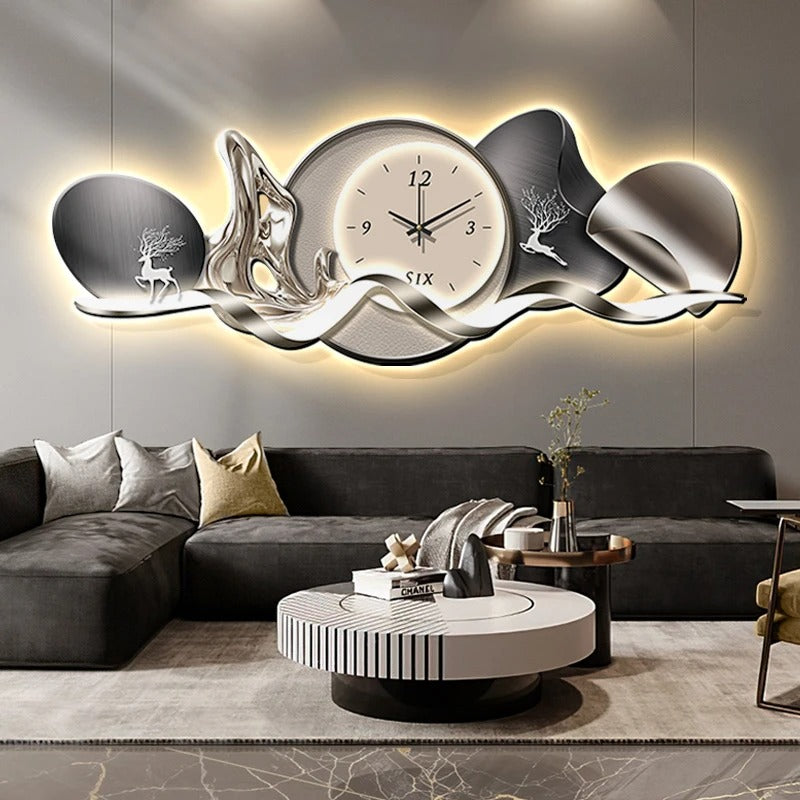 Conçue pour séduire les amateurs de raffinement, cette horloge murale design se distingue par ses lignes harmonieuses et ses détails délicats, notamment les silhouettes de cerfs symbolisant la sérénité et la nature. Elle s’intègre parfaitement dans un salon moderne, un bureau haut de gamme ou une entrée élégante. Chaque courbe et chaque teinte sont pensées pour créer un effet visuel apaisant et captivant, transformant votre espace en un lieu d’exception.